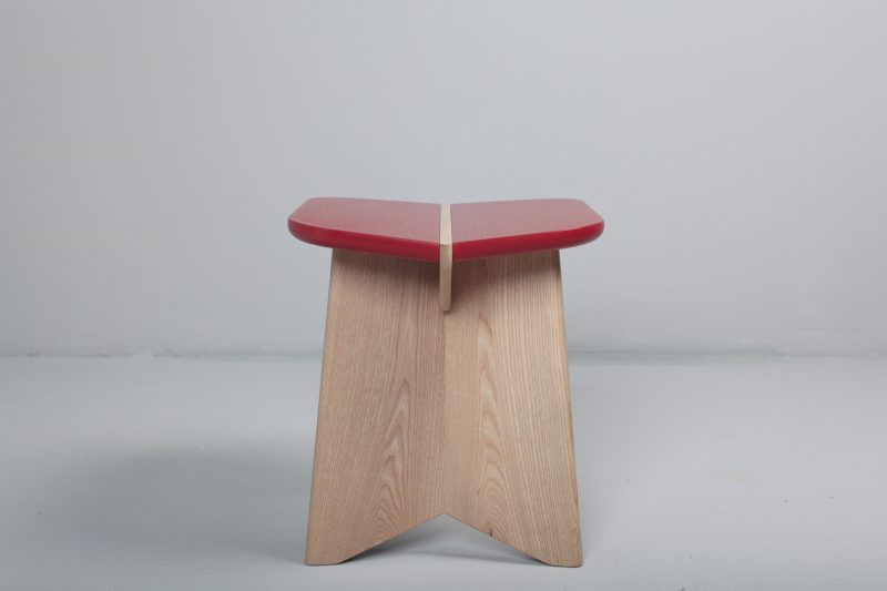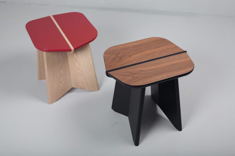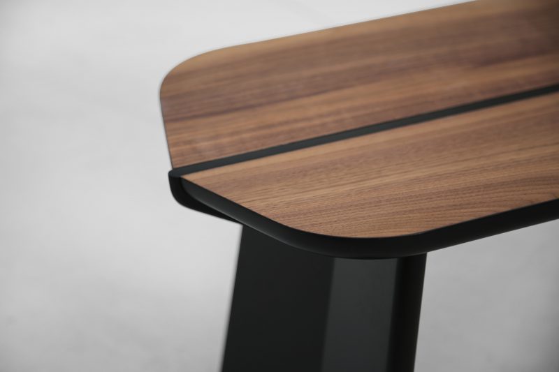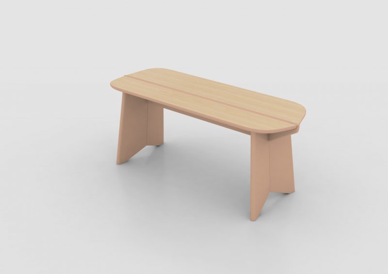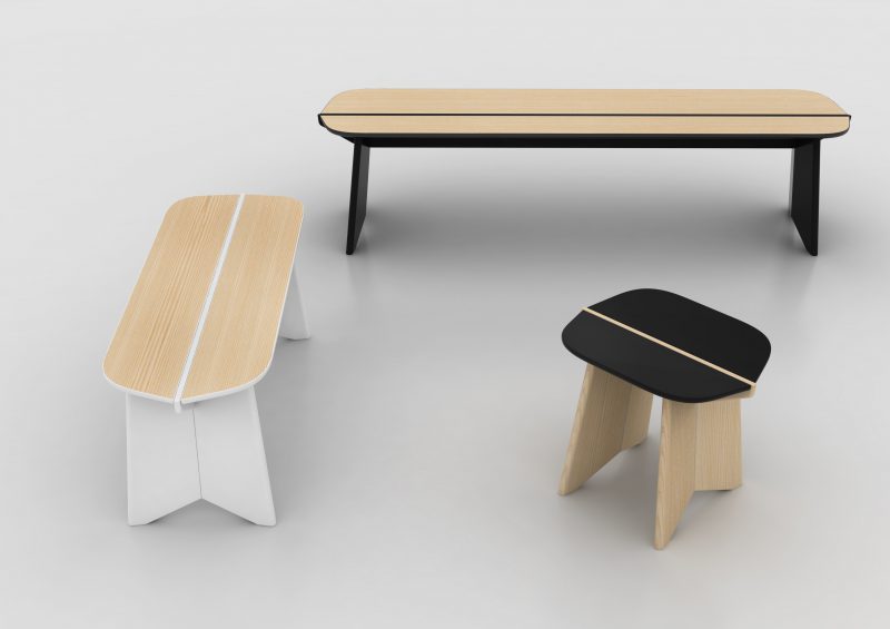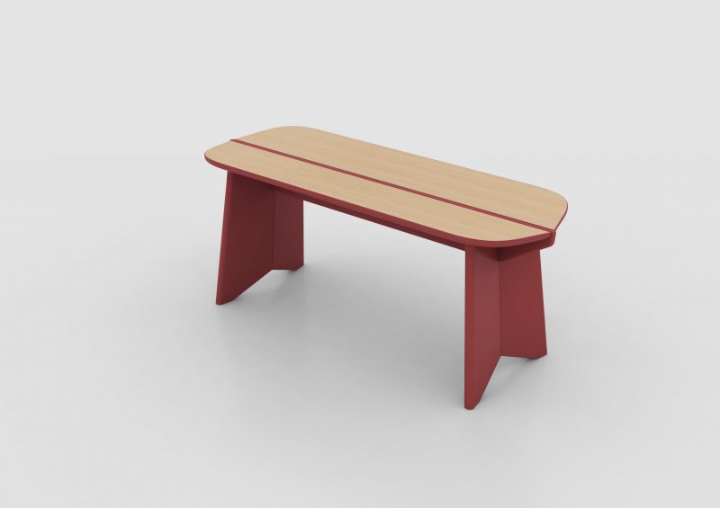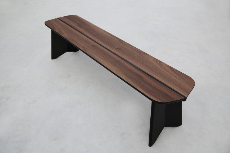 The bench comes in three sizes, in oak or walnut, combined with a range of colours.